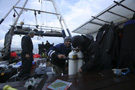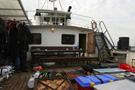 So ist es nicht wenig verwunderlich, dass wir unsere Doppelgeräte und Stages in München verladen haben und kurzerhand nach Rostock beförderten. Am Boot angekommen, staunten wir nicht schlecht, das gesamte Oberdeck war bereits mit Stages, diversen Doppelgeräten und Kisten gut belegt. Wir also unser Zeug ausgepackt und das Deck weiter belegt, als plötzlich jemand anmerkte dass noch sieben (7) weitere Taucher erwartet werden, kamen die ersten Bedenken auf, ob dass nicht vielleicht ein wenig eng werden könnte. Es kam wie es kommen musste, die sieben weiteren Taucher kamen und plazierten Ihr Equipment ebenfalls - und nicht anders zu erwarten, wurde das Deck extrem schnell sehr, sehr voll.